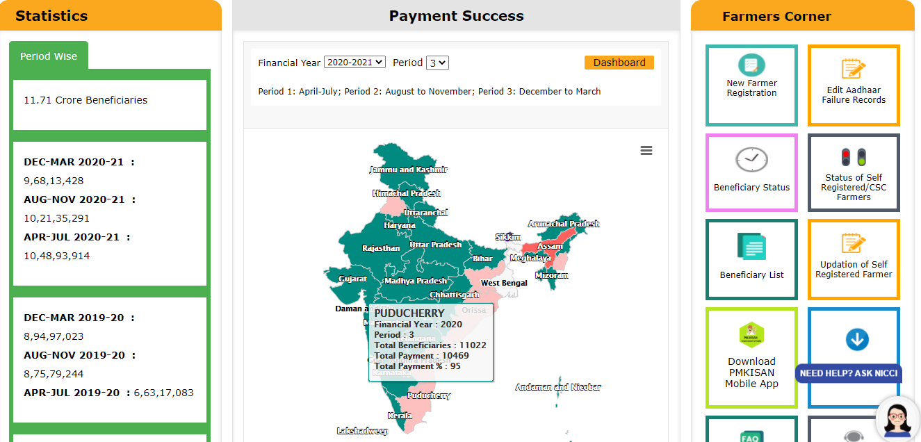 प्रत्येक वर्ष की पहली किस्त 1 अप्रैल से 31 जुलाई के बीच, दूसरी किस्त 1 अगस्त से 30 नवंबर के बीच और तीसरी किस्त 1 दिसंबर से 31 मार्च के बीच आती है।